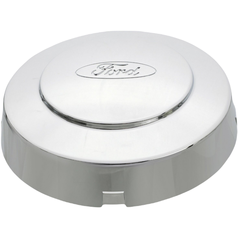 Fitment: Front Type 72 - 8 19/32" dia. all chrome cap w/Ford oval - use on F81Z 1007-GA and F81Z 1007-GB wheels - NOTE: replace all 4 caps on vehicles before 10/19/98 - original production design with blue Ford oval was discontinued, 4x2 - DRW - front Make/Model/Year: Ford F-350 DRW 1999-2004 Product Specifications: Product ID: C3335 Product: Center Cap (Single) Fitment: Front Material: Plastic Finish: Chrome Size: 8 5/8 Inch Diameter Lugs: 8 Indents: F81A-1A096-KC, 3C34-1A096-EA OE Part Number: F81Z-1130-KC Notes: ONLY Fits Wheel Pictured to Right. ONLY Fits Dual Rear Wheel Vehicles. F81Z1130KC; F81Z-1130-KC; Not Replaced